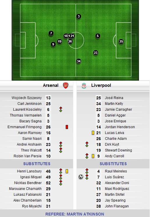 試合は一進一退、若干リバプールの方がチャンスが多いか?という感じで進みましたが、流れが変わったのはスアレスとメイレレスが同時投入されてからでした。相手が一人少なくなった直後なので単純にその前と比較はできませんが、それでもショートパスがポンポン繋がって前線が活発に動く、全く違うチームになったように見えました。1点目はあれはオフサイドで、しかも相手のクリアが味方選手に当たって入るというちょっとガナに気の毒なゴールでしたが、そこに行くまでの流れが良かったですね。後半にスアレスとメイレレス、マキシが3人並んでアップしているのを見て、「豪華だな~」と嬉しくなりましたが、彼らの起用がばっちり当たりました。2人とも、まだスタメンにはコンディションに若干の不安があるんでしょう。